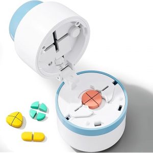 Pill Cutter 1/4 – Pill Splitter with Stainless Steel Blade for Cutting Small Pills or Large Pills in one Fourth, Suitable for Cuting Vitamins, Tablets (1-4 Blue)