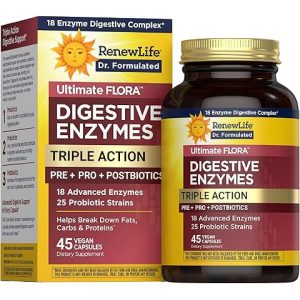 Renew Life Ultimate Flora Digestive Enzymes with Probiotics and Prebiotics | Doctor Formulated | 45 Vegan Capsules | Eases Occasional Gas, Bloating & Discomfort | Dairy, Soy and Gluten Free Supplement