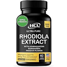 Rhodiola Rosea Supplement High Potency Extract 500mg – 3% Rosavins 1% Salidrosides with Ashwagandha Shisandra Passion Flower Herb Powder Capsules – Natural Way to Relieve Stress – Pills for Energy