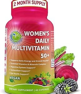 Women’s Daily Multivitamin 50 Plus – Vegan Methylated Multivitamin for Women 50 and Over with Biotin, Organic Superfoods & Lutein – Eye, Energy, Gut & Optimal Health Support – Easy to Swallow Capsules