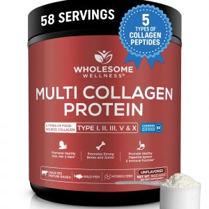 Wholesome Wellness Premium Multi Collagen Peptides Protein Powder for Women and Men, 5 Types of Hydrolyzed Collagen, Grass-Fed, Non-GMO & Unflavored, Pure Protein for Youthful Skin & Joint Recovery