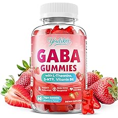 GABA Gummies 500mg with L-Theanine, 5-HTP, Vitamins B6, B12, D3 and Ashwagandha, Melatonin-Free for Zzz Better, GABA Supplements for Adult, Sugar-Free, Strawberry Flavor, 60 Count