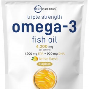 Micro Ingredients Triple Strength Omega 3 Fish Oil Supplements 4200mg Per Serving, 240 Softgels – Lemon Flavored – Burpless | EPA 1200mg + DHA 900mg | Deep Sea Fish