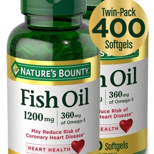 Nature’s Bounty Fish Oil, Dietary Supplement with 360mg Omega-3, Supports Heart Health, 1200mg, 200 Softgels (Pack of 2)