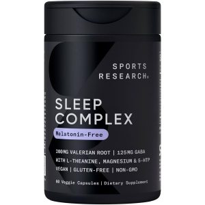 Sports Research® Sleep Complex- Melatonin-Free Vegan Capsules – with Valerian Root, GABA, L-Theanine, Magnesium & 5-HTP – 30 Servings