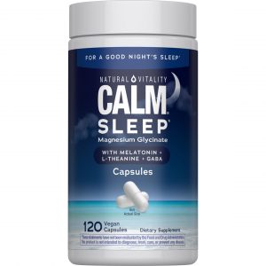 Natural Vitality Calm Sleep Capsules | Magnesium with Melatonin, L-Theanine & GABA Supplement | for a Good Night’s Sleep | Non-GMO, Gluten Free & Vegan | 120 Count