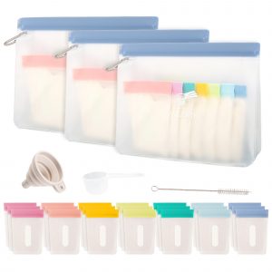 VAGANTH Protein Powder Travel Container Set,Reusable Powder Supplement Container To Go,21Pcs Single Dose Bags & 3Pcs Large Zip Bags,Portable Travel Containers with Funnel,Spoon