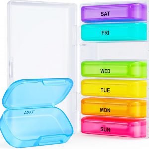ZIKEE 7 Packs Extra Large Pill Organizer, Portable Pill Box 7 Day for Pocket, Purse, Weekly Pill Case with Dual-Protection Design, Pill Container for Medication, Vitamin, Fish Oil, Supplement