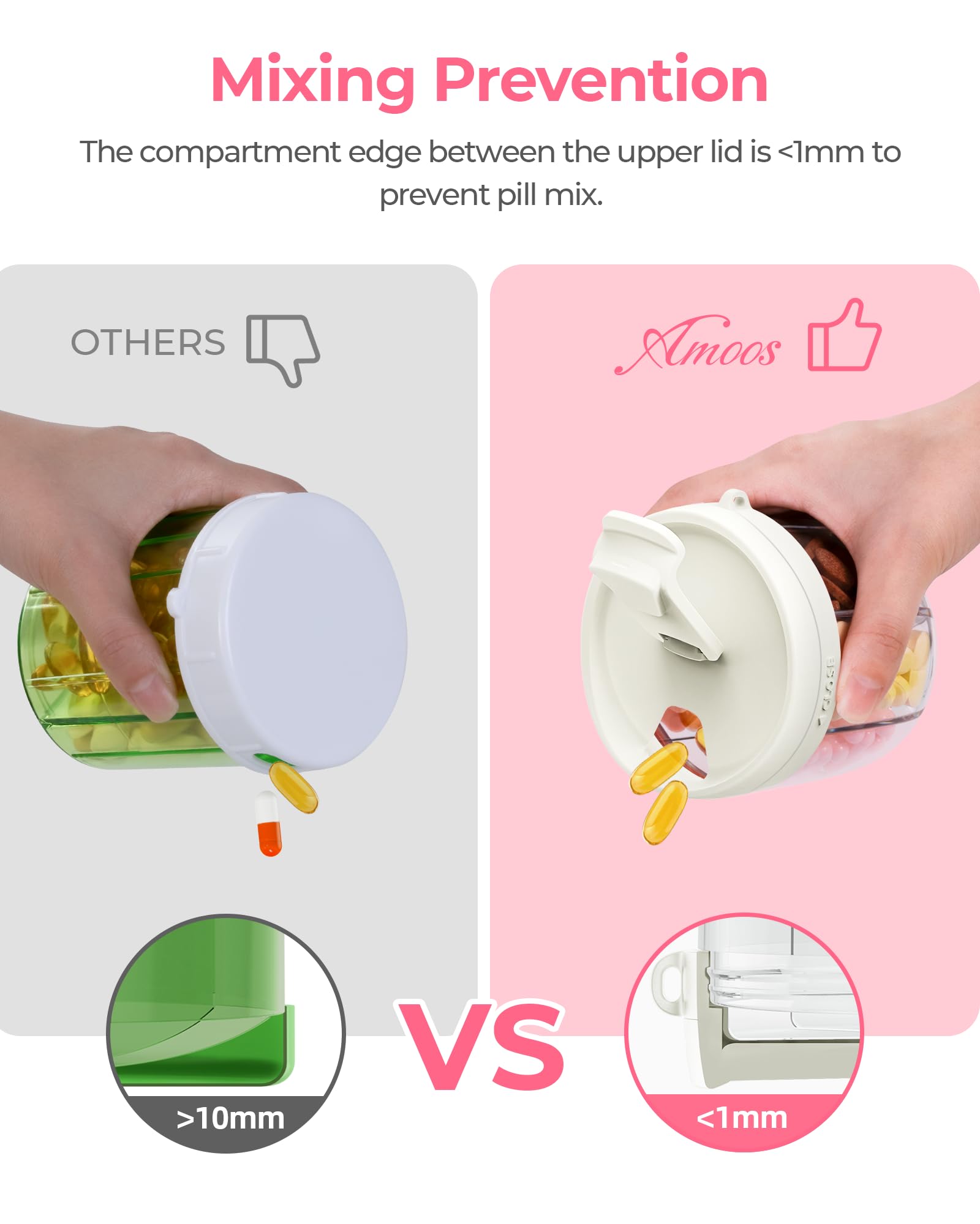 - Why You Choose AMOOS: We provide a 30-day return and replacement service. If you have any problems with this pill organizer, please contact us, and the AMOOS customer service team will always be here to solve your concerns