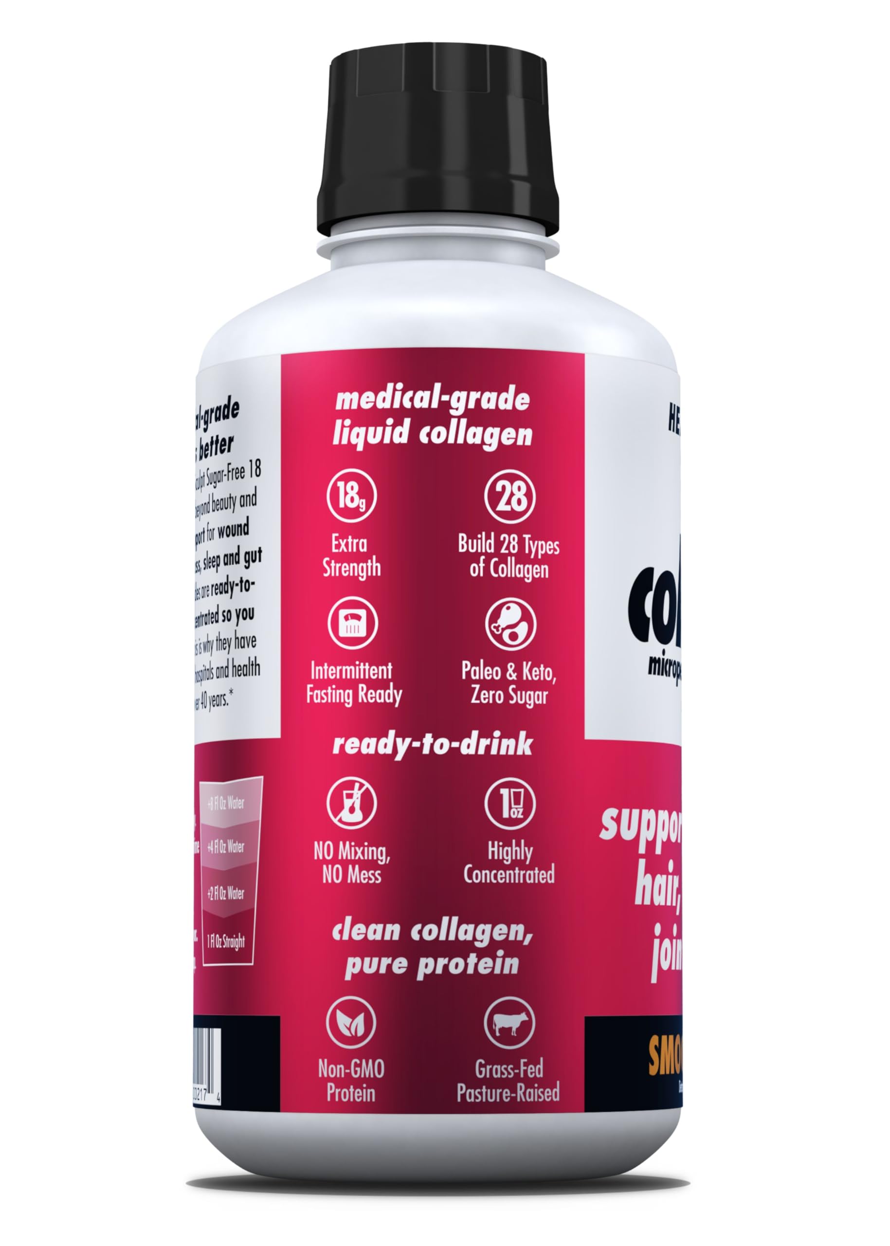 - Whole Body Health, Multi-Collagen Benefits: Our liquid collagen peptides build all 28 types of collagen in your body and are not just for your hair, skin, and nails. They support building and repairing muscle, promote better sleep, enhance recovery.