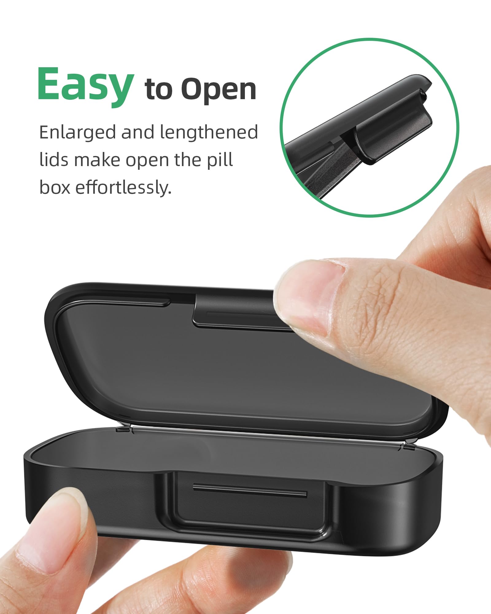 - Easy Access: The enlarged and lengthened lids of this medicine organizer allow you effortless access to your pills, making daily pill management easier. The secure lids protect the pill against dust or moisture.