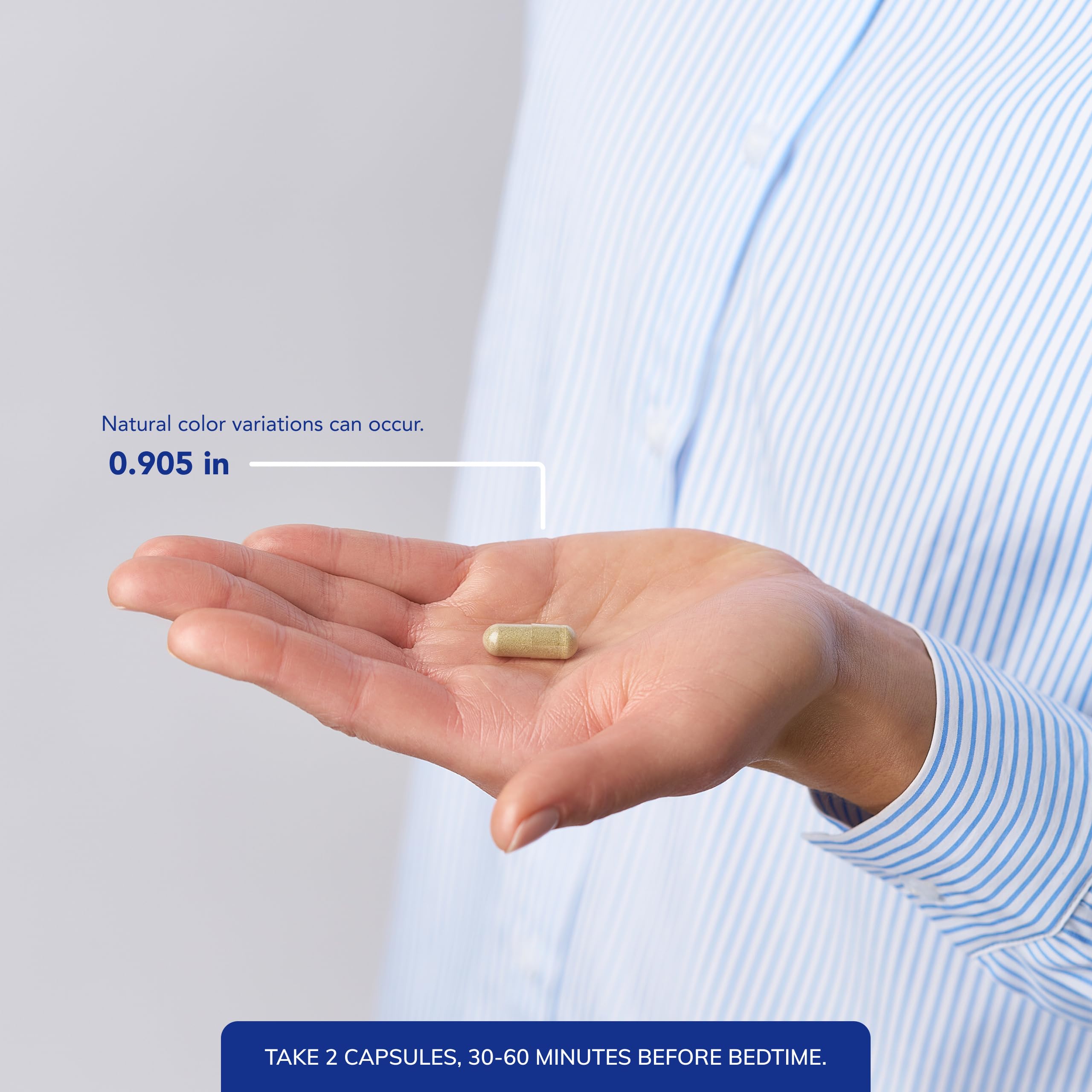 - Suggested Use: For optimal results, take 2 capsules of this dietary supplement 30-60 minutes before bedtime