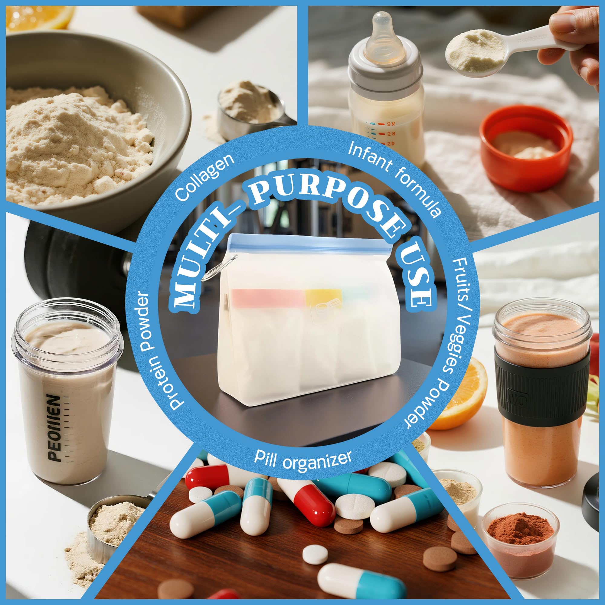 - FOOD-GRADE MATERIALS-Our travel powder container is made of PEVA material,food-grade, BPA-free that are reusable, helping you save money while while reducing waste.